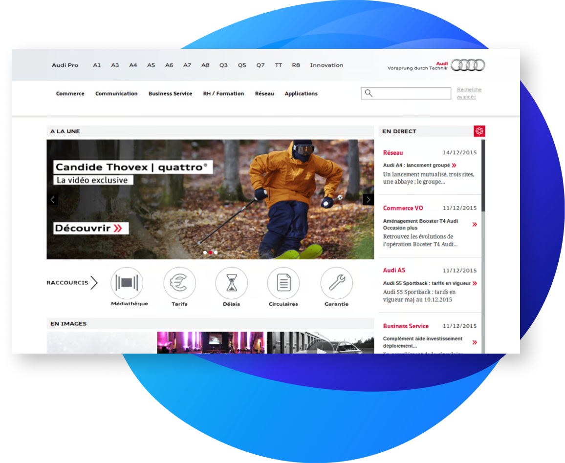 パーソナライゼーション機能や検索機能、セルフサービス機能により『コンテンツが多すぎる』や『情報共有が徹底できていない』といった大企業によくある課題を解決できます。